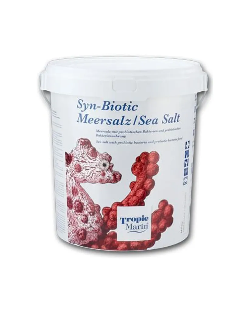 Tropic Marin Syn-Biotic Sea Salt is a pharmaceutically pure sea salt with probiotic bacteria and prebiotic bacteria food. The new Tropic Marin Syn-Biotic Sea Salt contains probiotic bacteria for fish and shrimp and special prebiotic bacteria food to promote probiotic bacterial growth and to create low-nutrient conditions in the aquarium for LPS and SPS corals.
