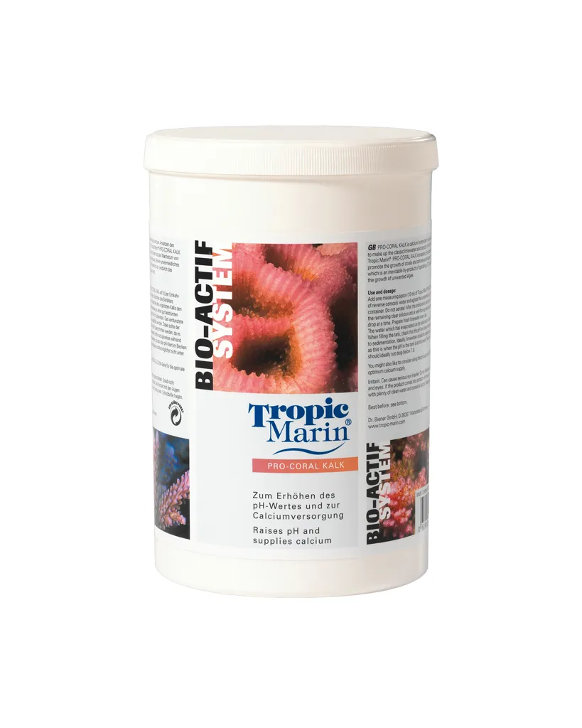 PRO-CORAL KALK is calcium hydroxide in its purest form and is used to make up the classic limewater advocated by WILKENS. Tropic Marin® PRO-CORAL KALK increases pH and calcium content to promote the growth of corals and calcareous coralline algae. It inhibits the growth of undesirable algae by binding carbonic acid, one of the inevitable by-products of operating a CO2 calcium reactor.